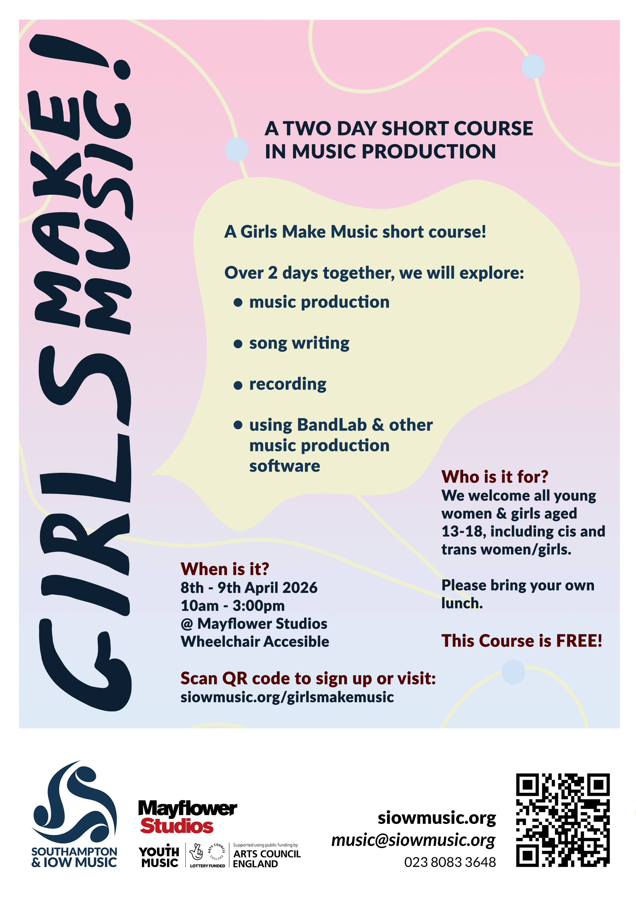 Girls Make Music returns with a two day short course in Music Production, 8-9th April 2026!