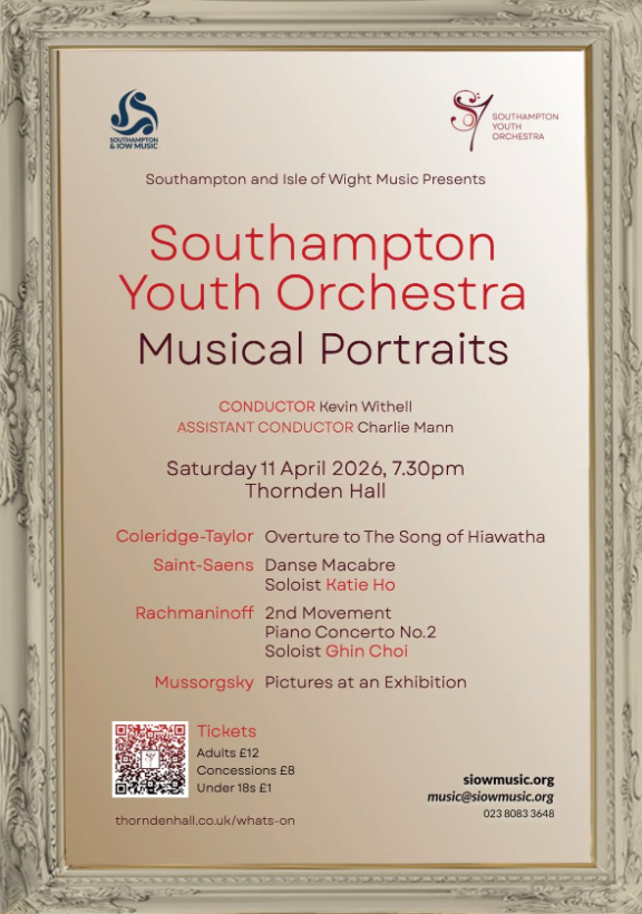 We have one more performance to go, with the Southampton Youth Orchestra performing on Saturday 11 April, 7.30 at the Thornden Hall. Two young musicians from the orchestra will appear as soloists in the concert. An evening not to be missed!