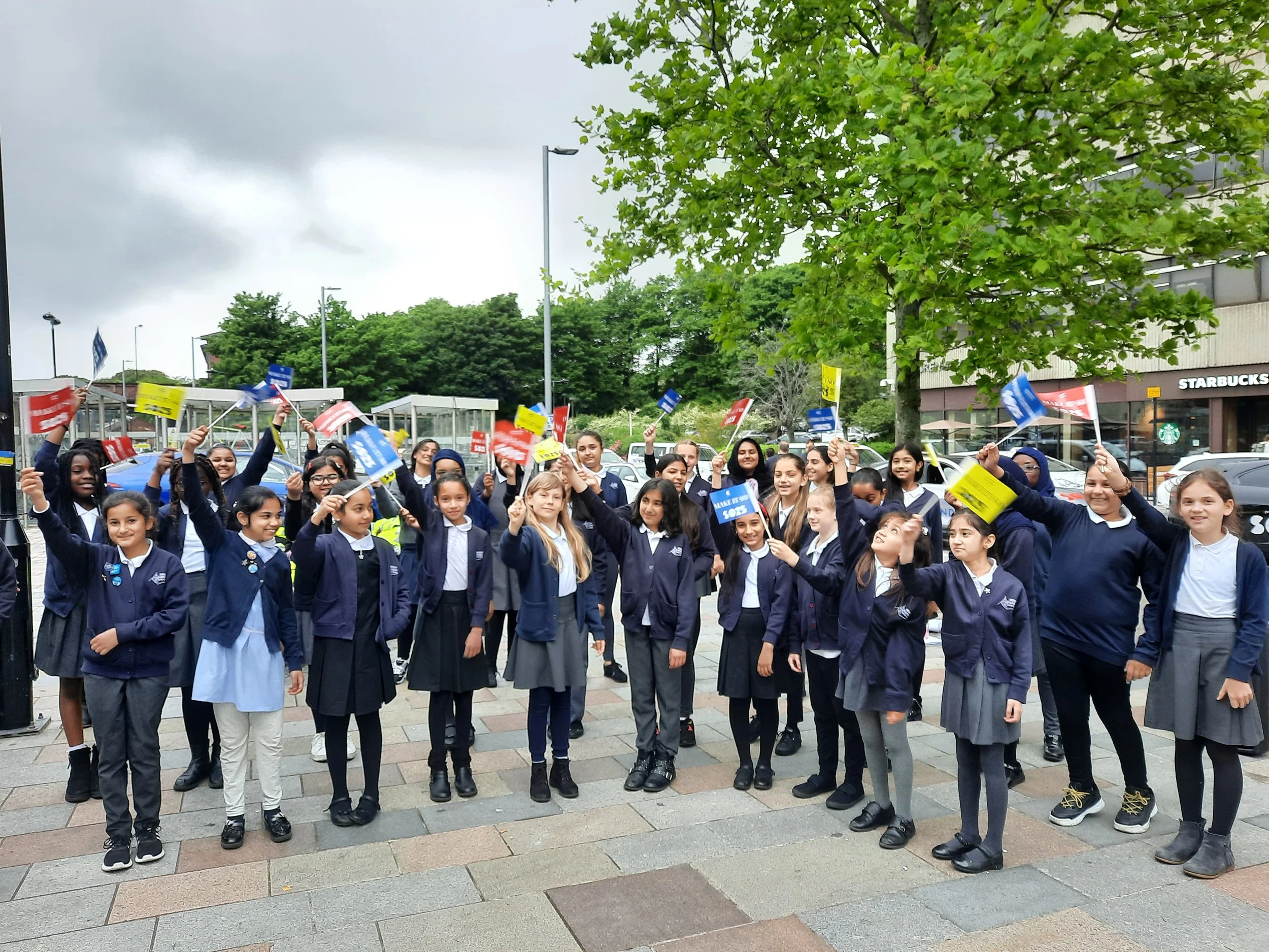 Over 900 pupils from nine schools came together for the final Biosphere Big Sing event following weeks of workshops and rehearsals which involved thousands of children of all ages. The event itself took place on Brown’s Golf Course in Sandown and beautiful flags and set dressing were provided by IOW international carnival company Shademakers.